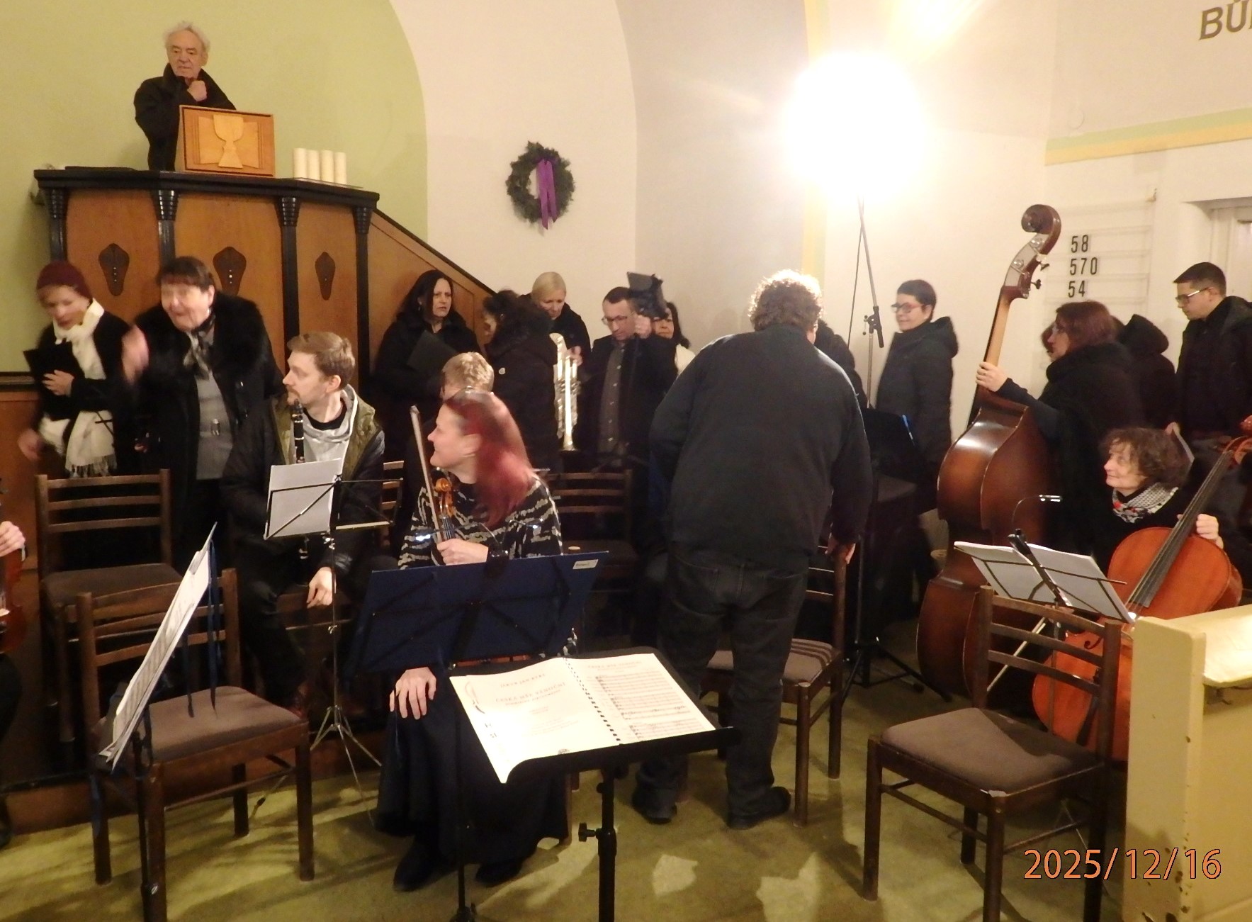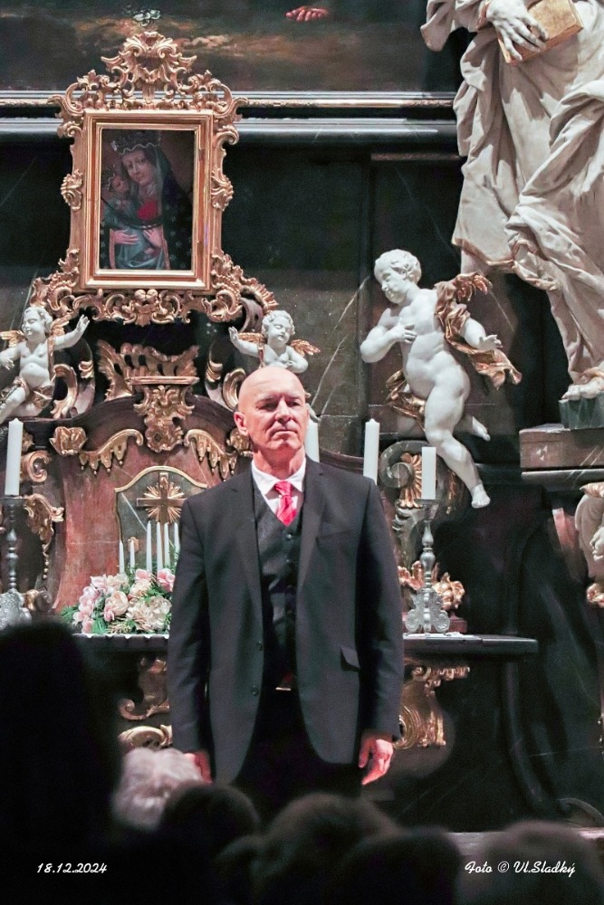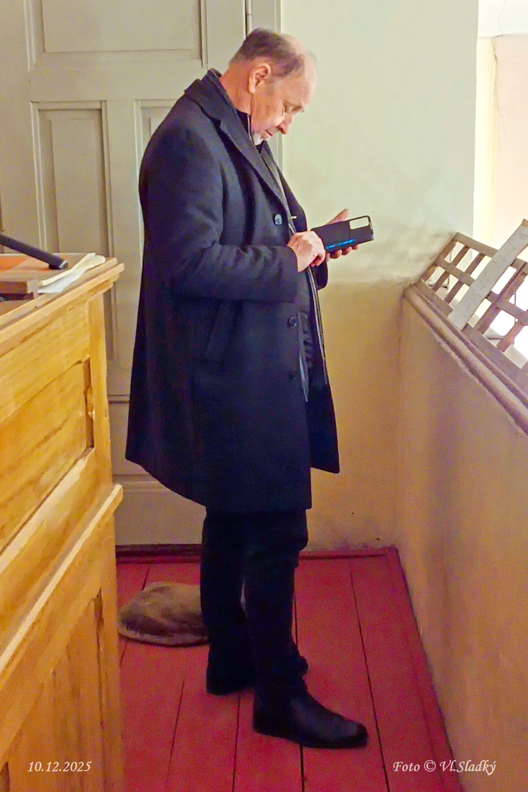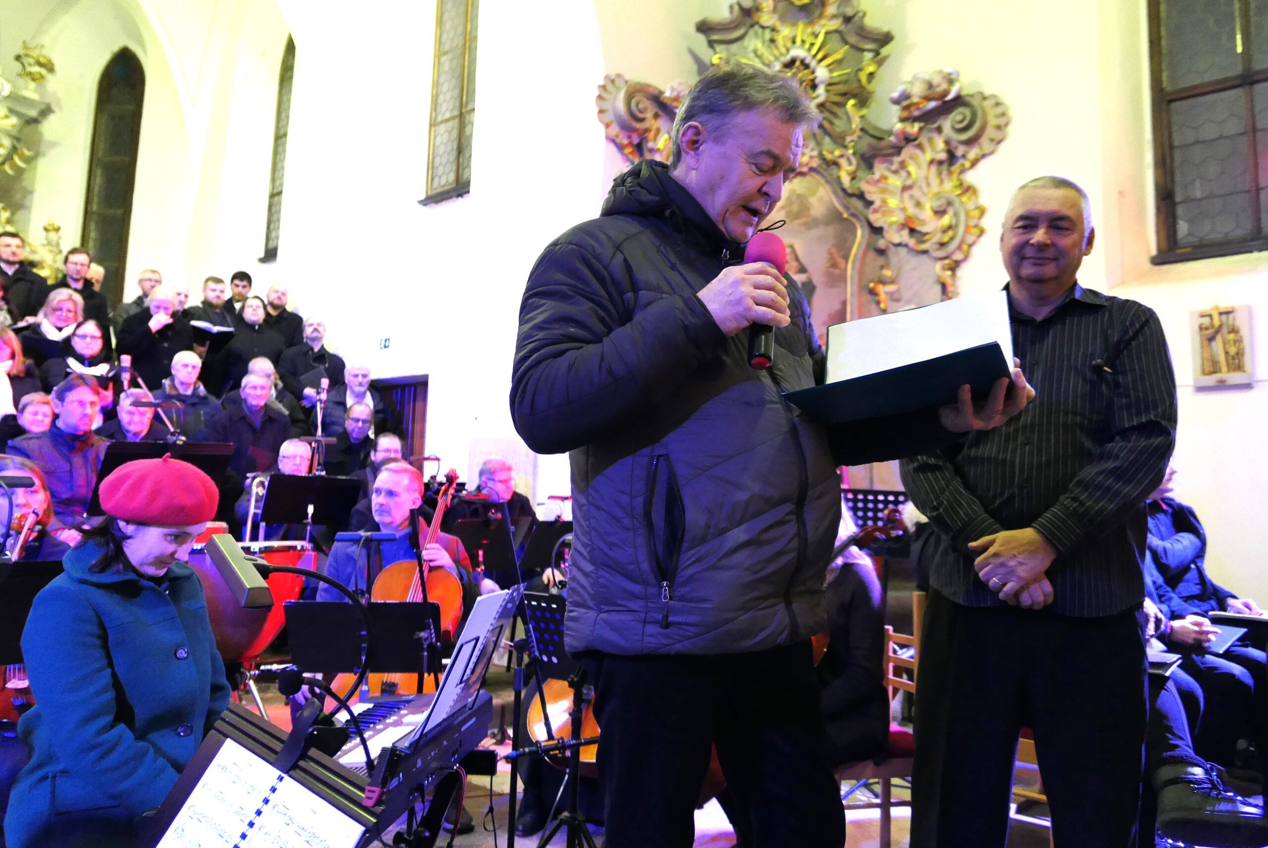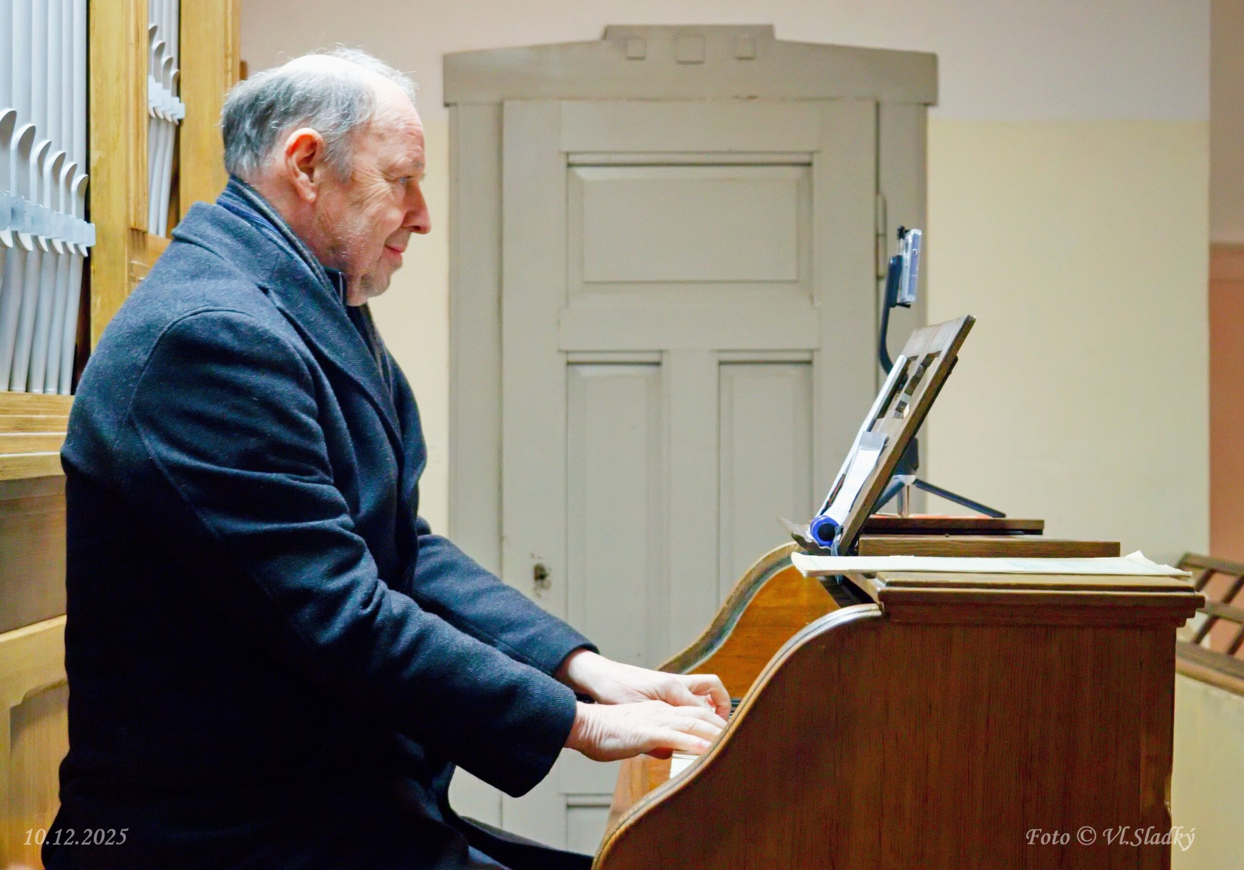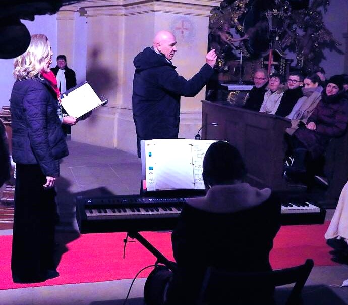 Smetana zpívá na pódiu pro Adventní zpěvy