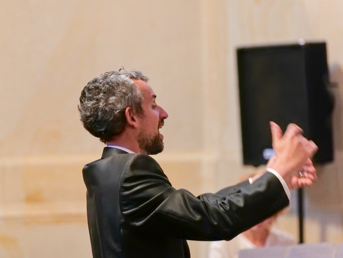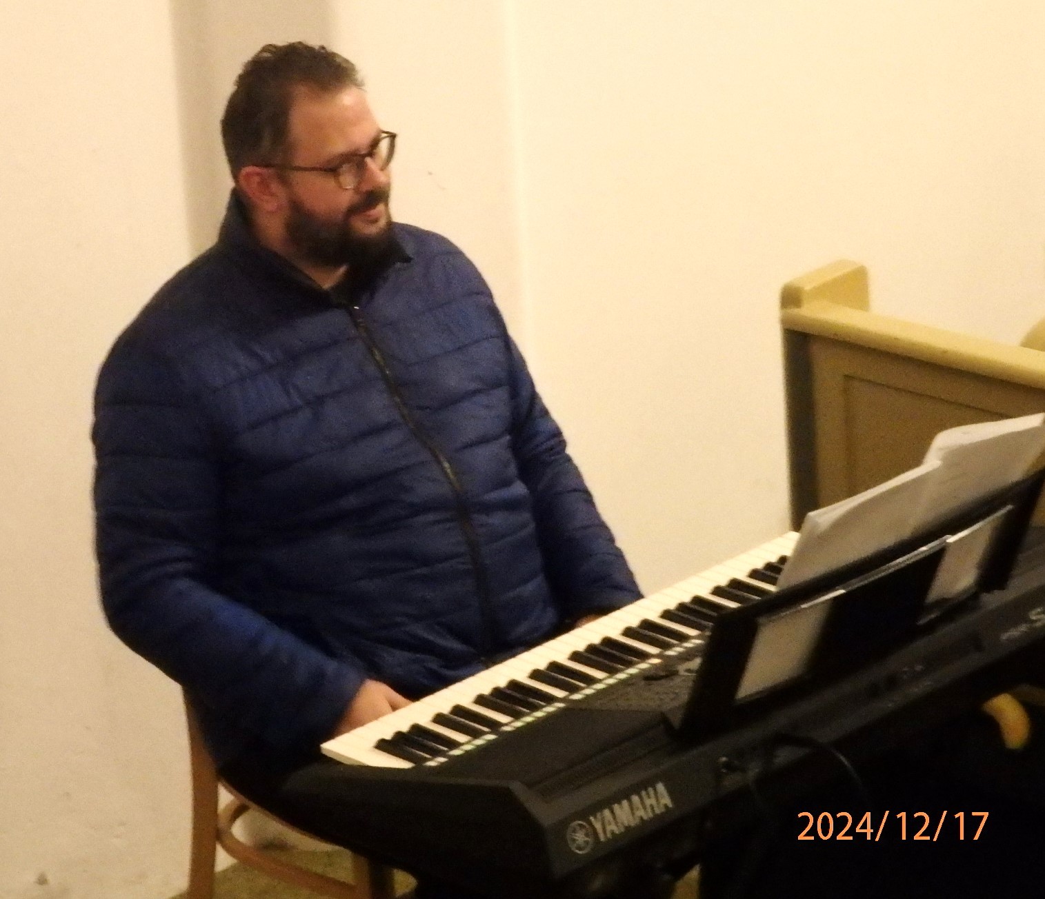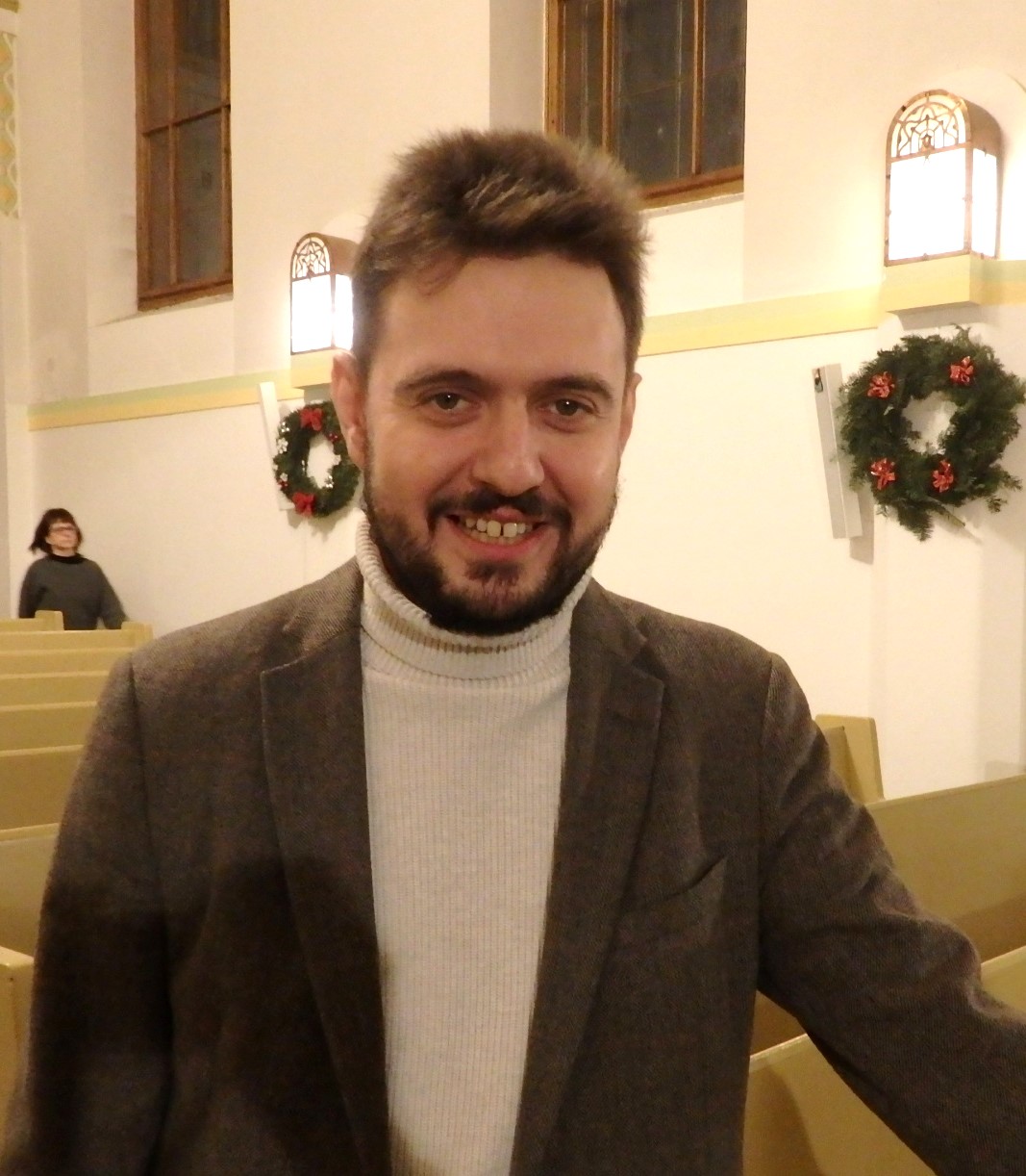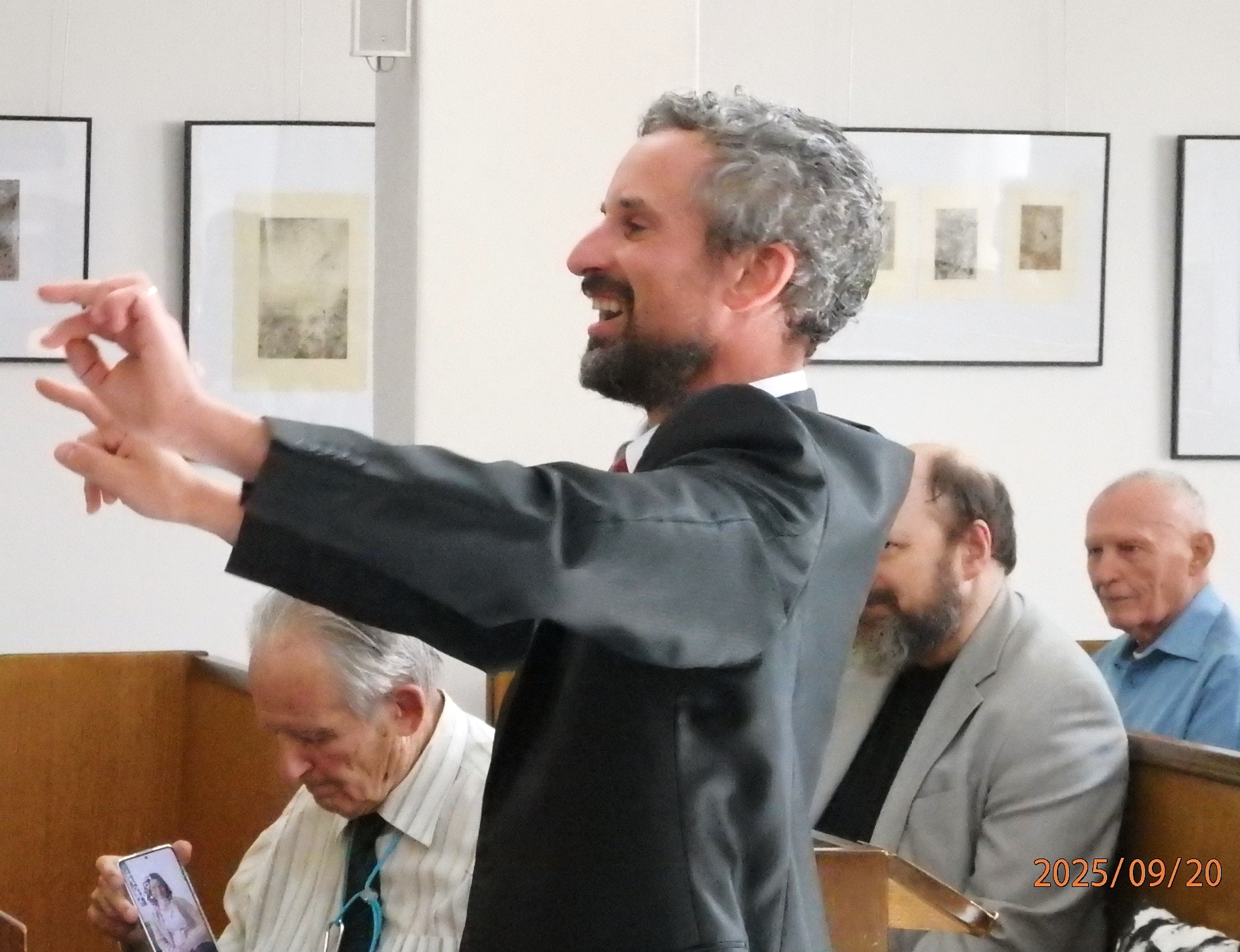 Smetana zpívá na pódiu pro Adventní zpěvy