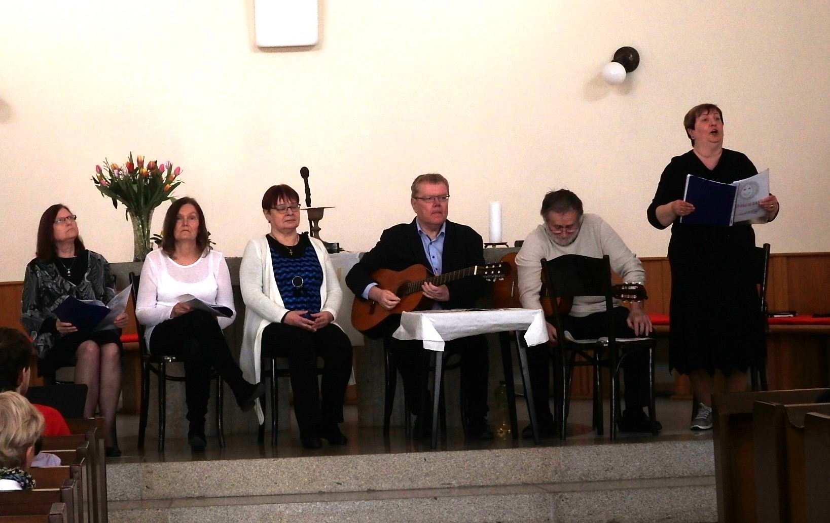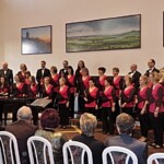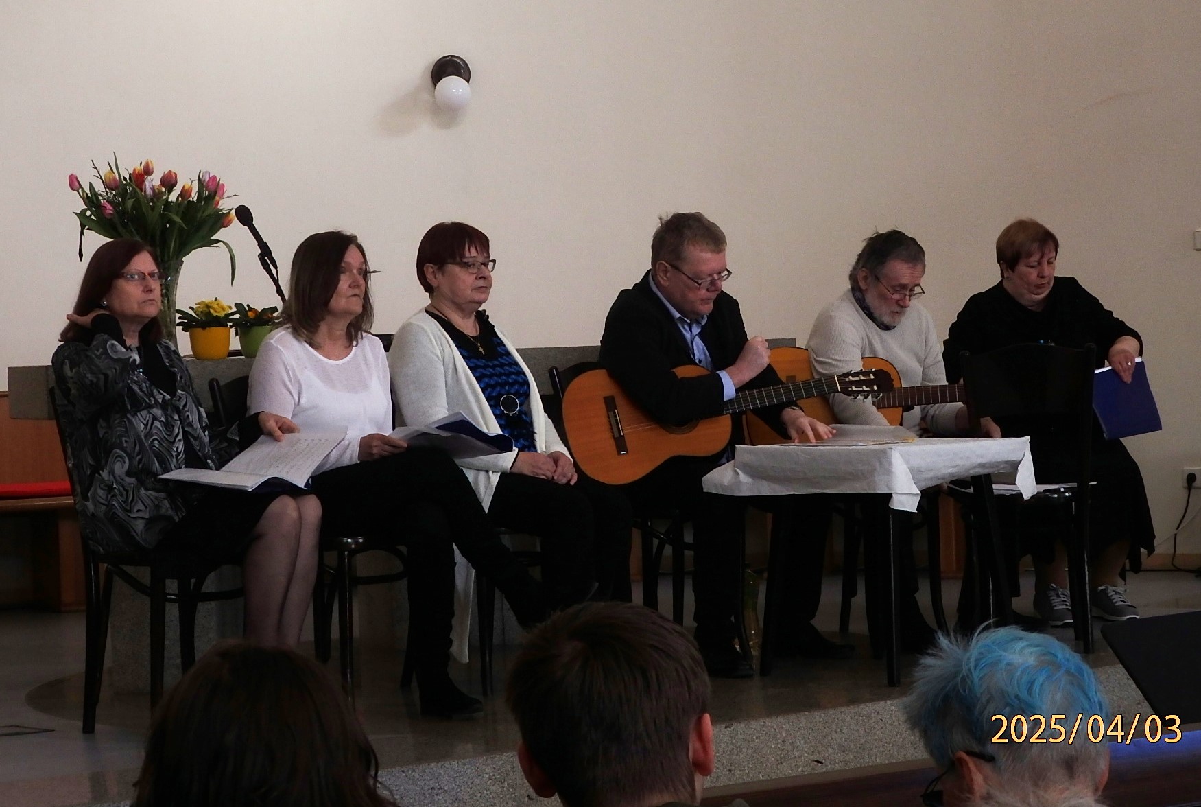 Společná píseň na závěr přátelského koncertu v Hlaholu