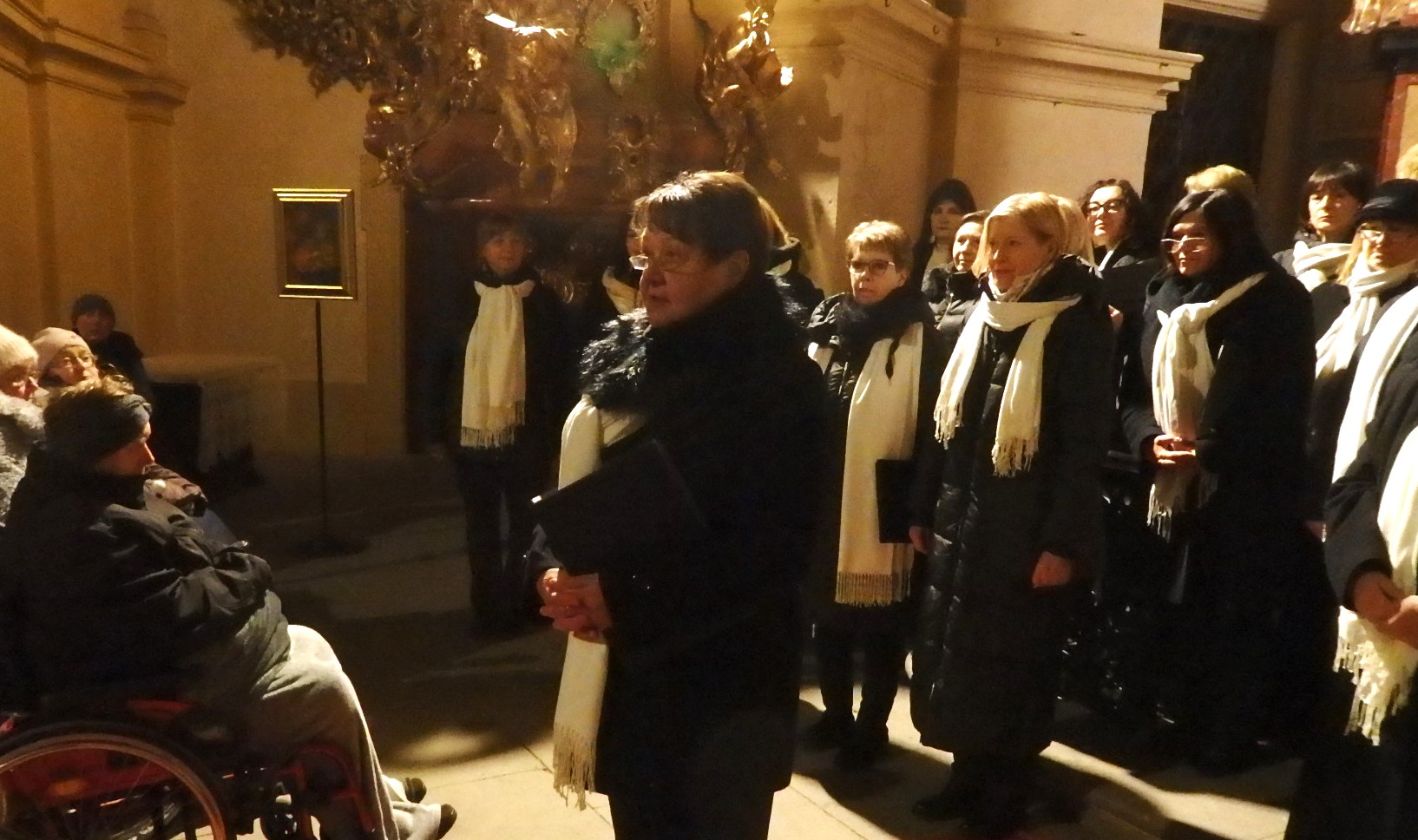 nástup sboru Smetana před vystoupením na pódiu adventních zpěvů