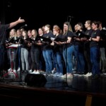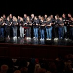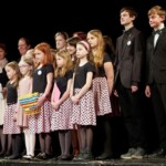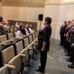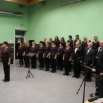Nástup na společnou píseň na závěr přátelského koncertu v Hlaholu